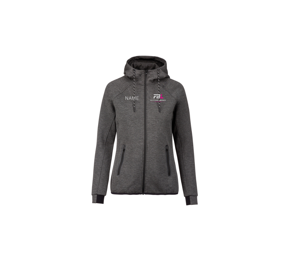 - Two-tone contrast drawcord with plastic tips.